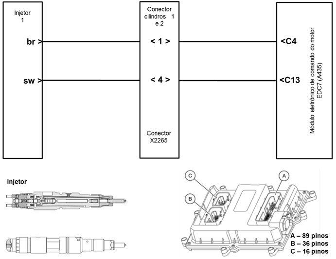 módulo EDC7 monitora o circuito entre módulo, chicote e injetor quanto
