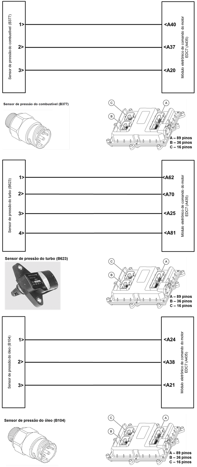 alimentação dos sensores: de baixa pressão do combustível, da pressão