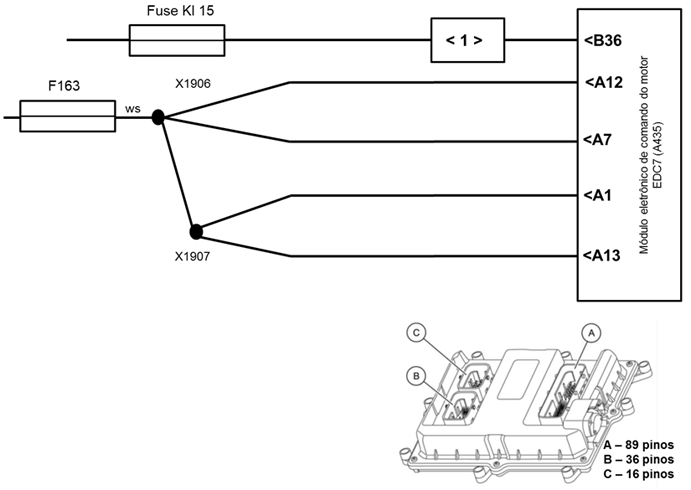 Quando a causa for uma falha de alimentação do módulo EDC7 também podem surgir as falhas 3082/01, 3087/04 e