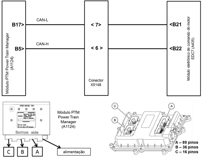 PTM (Power Train Manager) e no módulo EDC7 não coincidem.