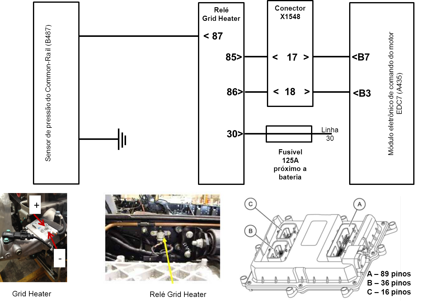 – Caso nenhuma falha de fiação ou conector seja verificada, substituir o relé acionador do Grid Heater.