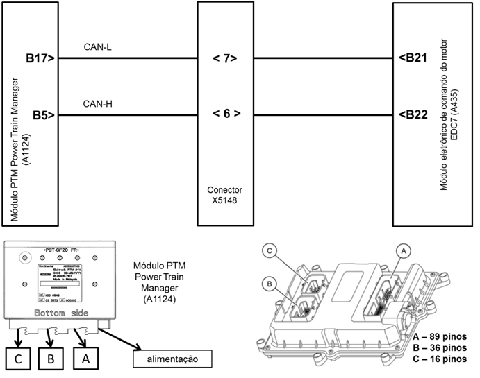 substituir o módulo EDC7 ou a PTM (Power Train Manager)