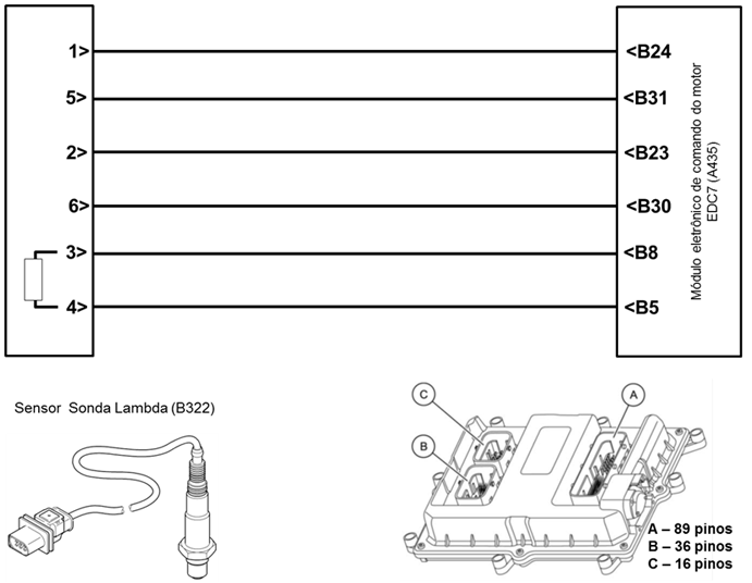 O módulo EDC7 monitora o circuito da sonda lambda quanto a curto-circuito e a interrupção da linha.