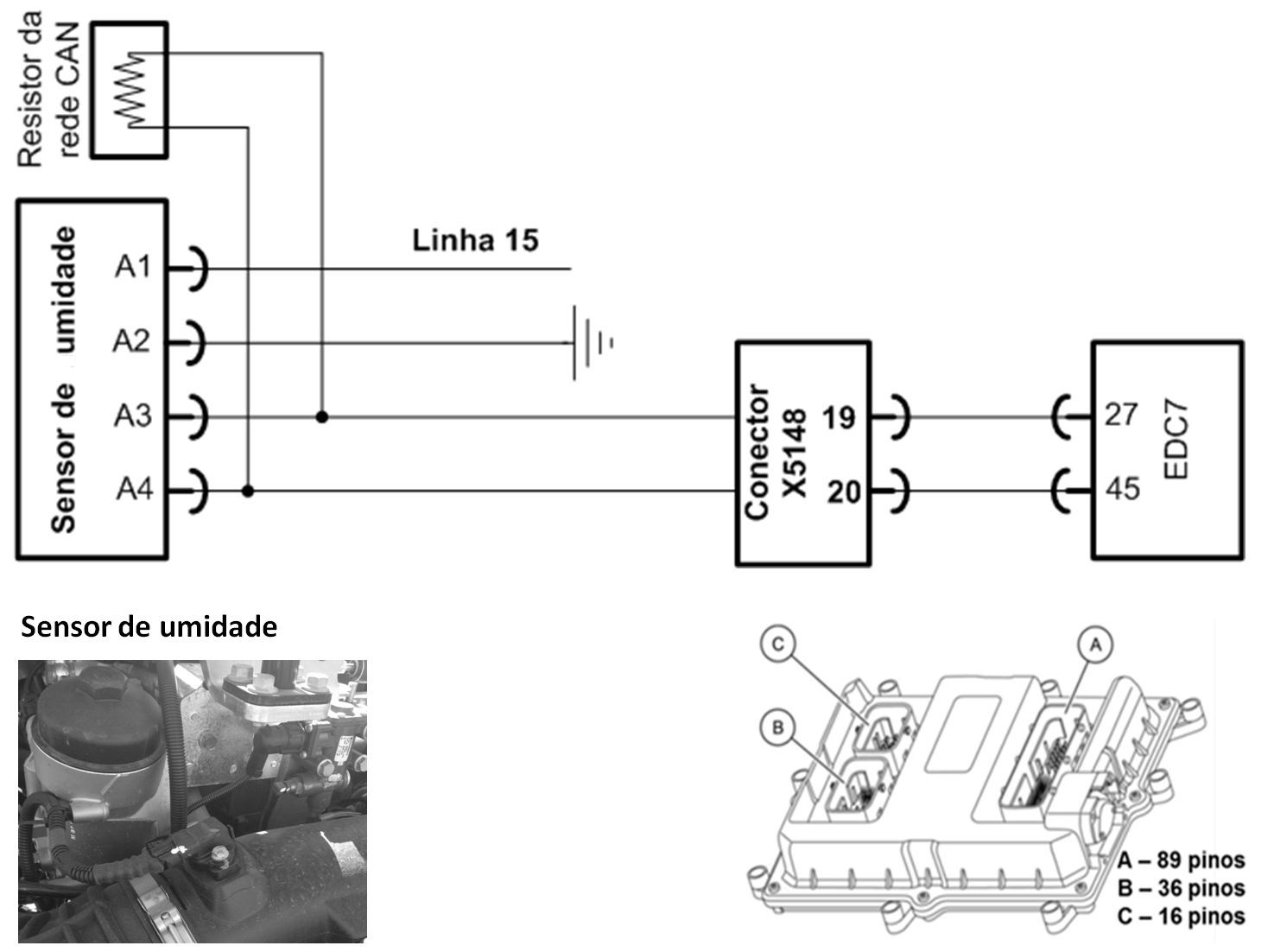 Pino Função Módulo eletrônico de comando do motor EDC Pin