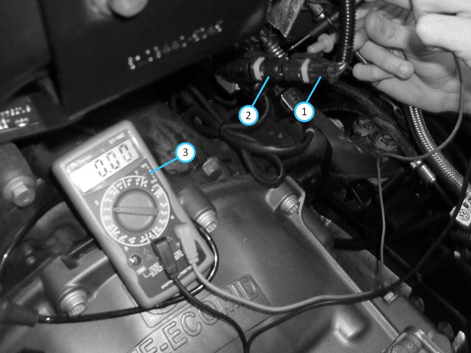 cavidades (1 e 2) do conector do cilindro de acionamento da válvula