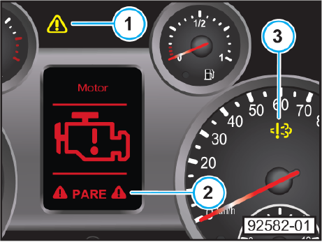 Não é necessário parar o veículo. Porém, na primeira oportunidade dirija-se a um Concessionário MAN Latin America. No visor, aparecerá o ícone ao qual a falha está associada.
