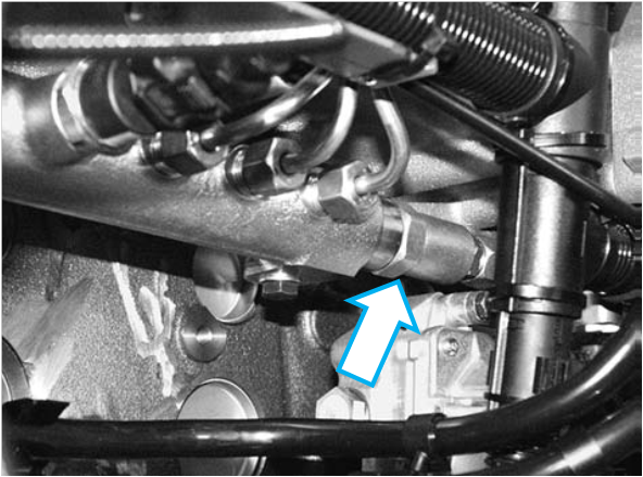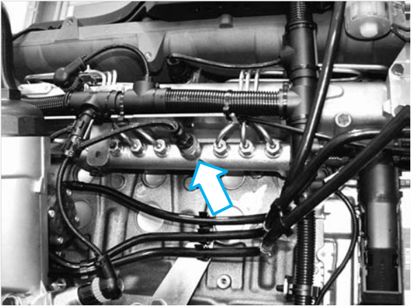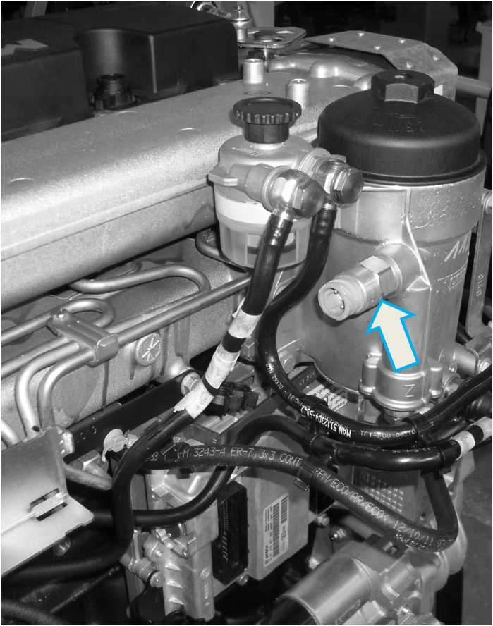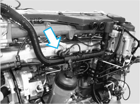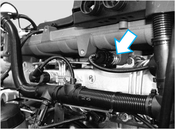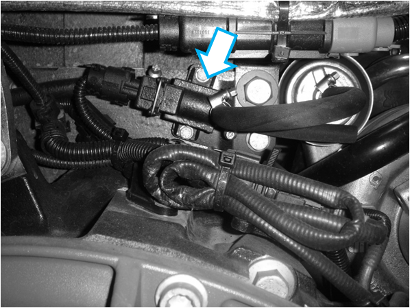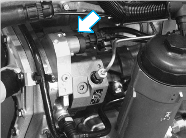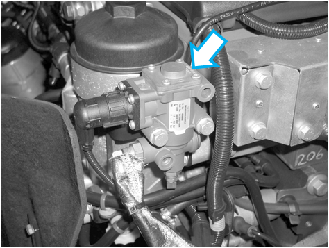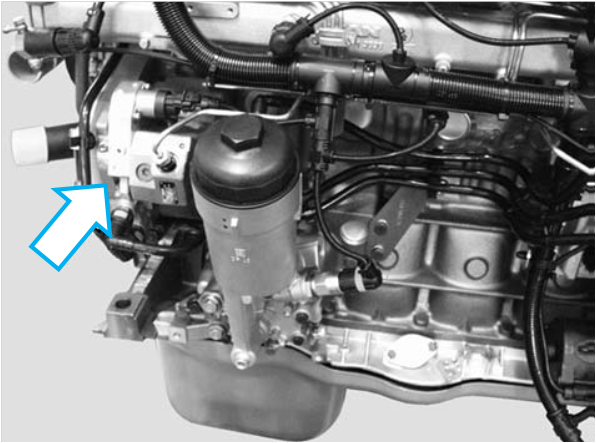 A válvula proporcional E-AGR está instalada próxima à carcaça do filtro de combustível.