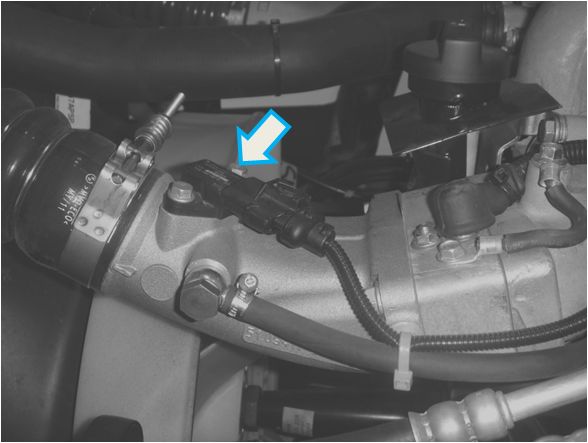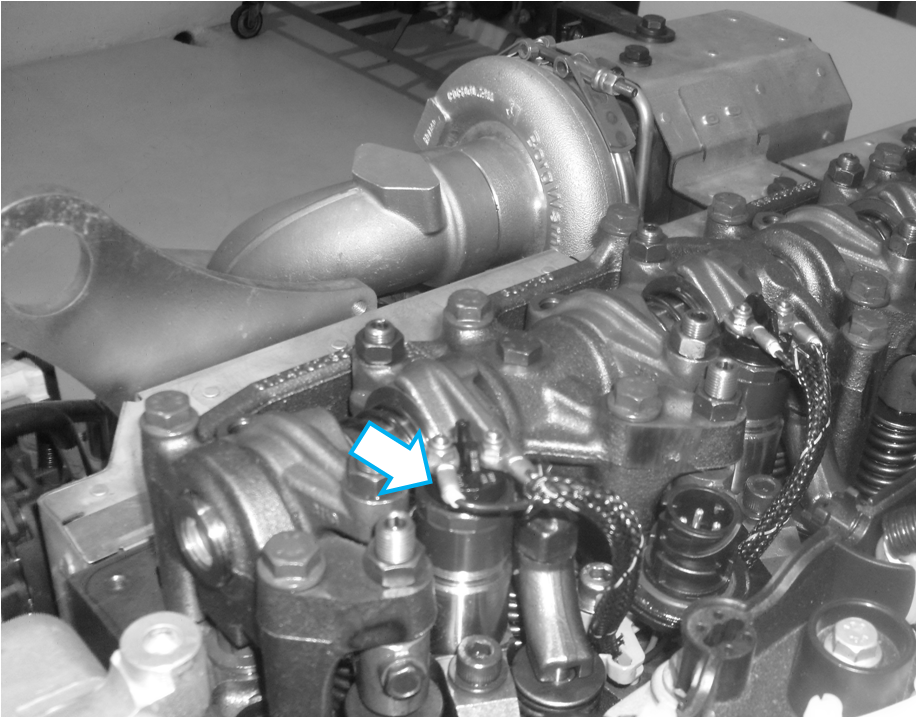 O atuador de retorno dos gases de escape está instalado na parte superior traseira do motor, próximo a tampa de válvulas do cabeçote.