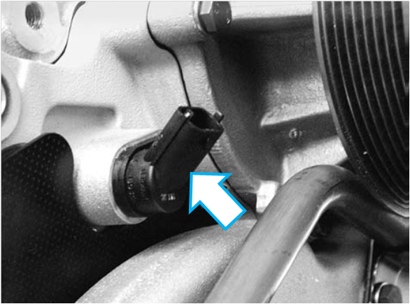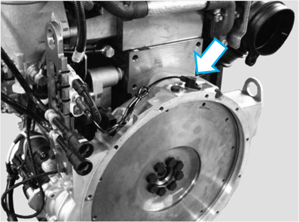 A válvula proporcional do turbocompressor está instalada na parte traseira do motor, próximo à carcaça do volante.