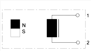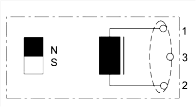 Na posição de repouso (êmbolo retraído), o contato 'Reed' está fechado. Considerar representações divergentes nos esquemas de circuitos.