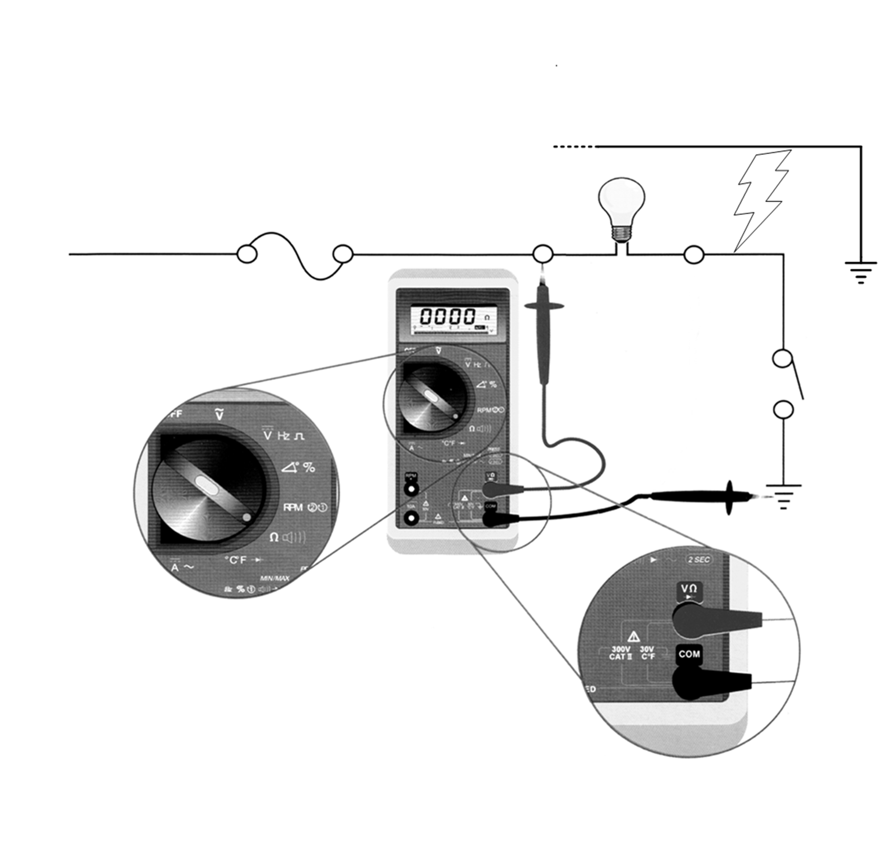 prova em uma extremidade do circuito ou no outro terminal do componente. Leia a medição exibida. Se houver um circuito aberto, o medidor