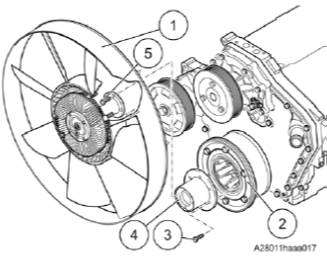 • Inserir o acoplamento (1) no ventilador do radiador (2).