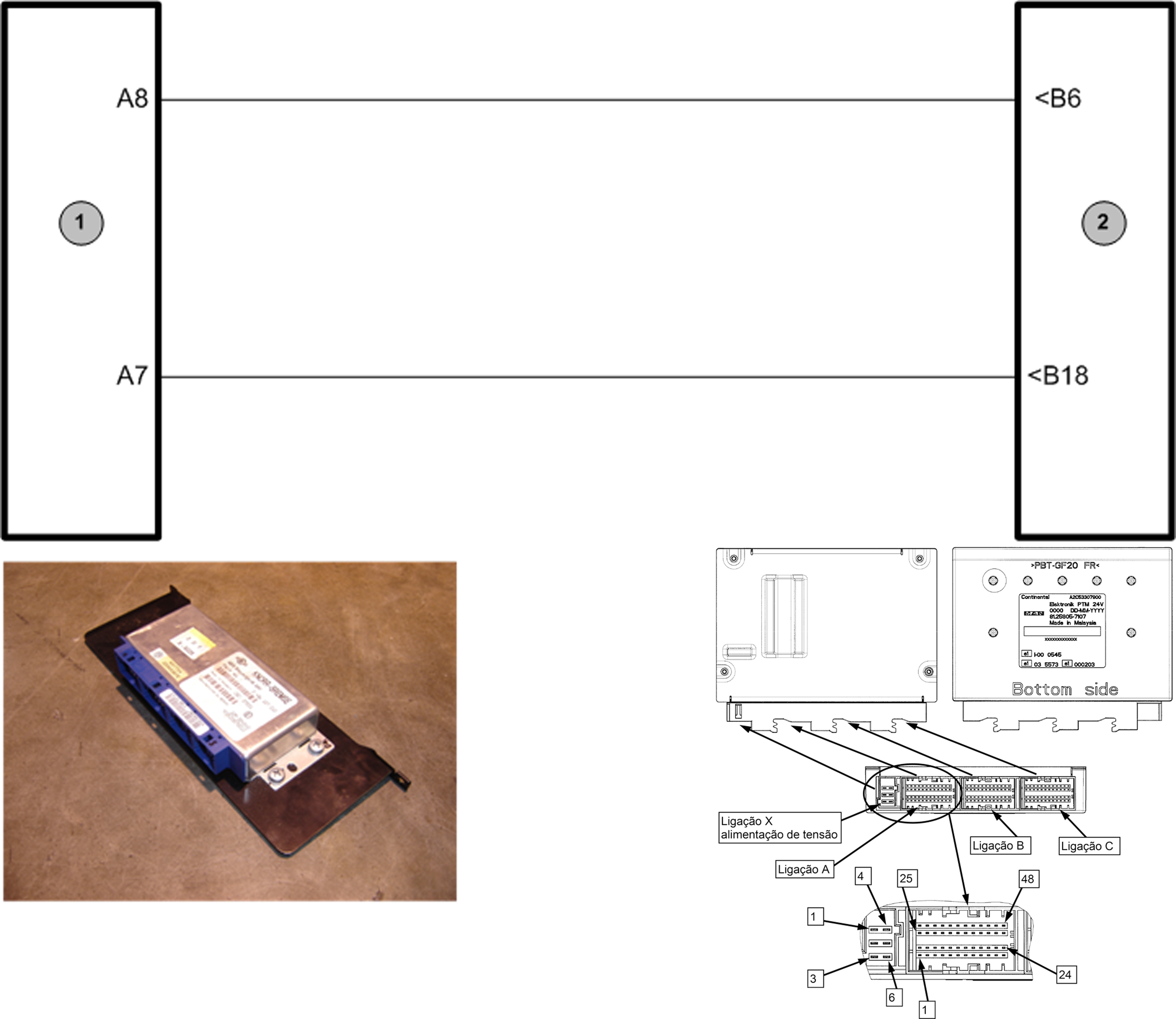 - Interruptor do pedal de freio pino A3 para a PTM pino C34