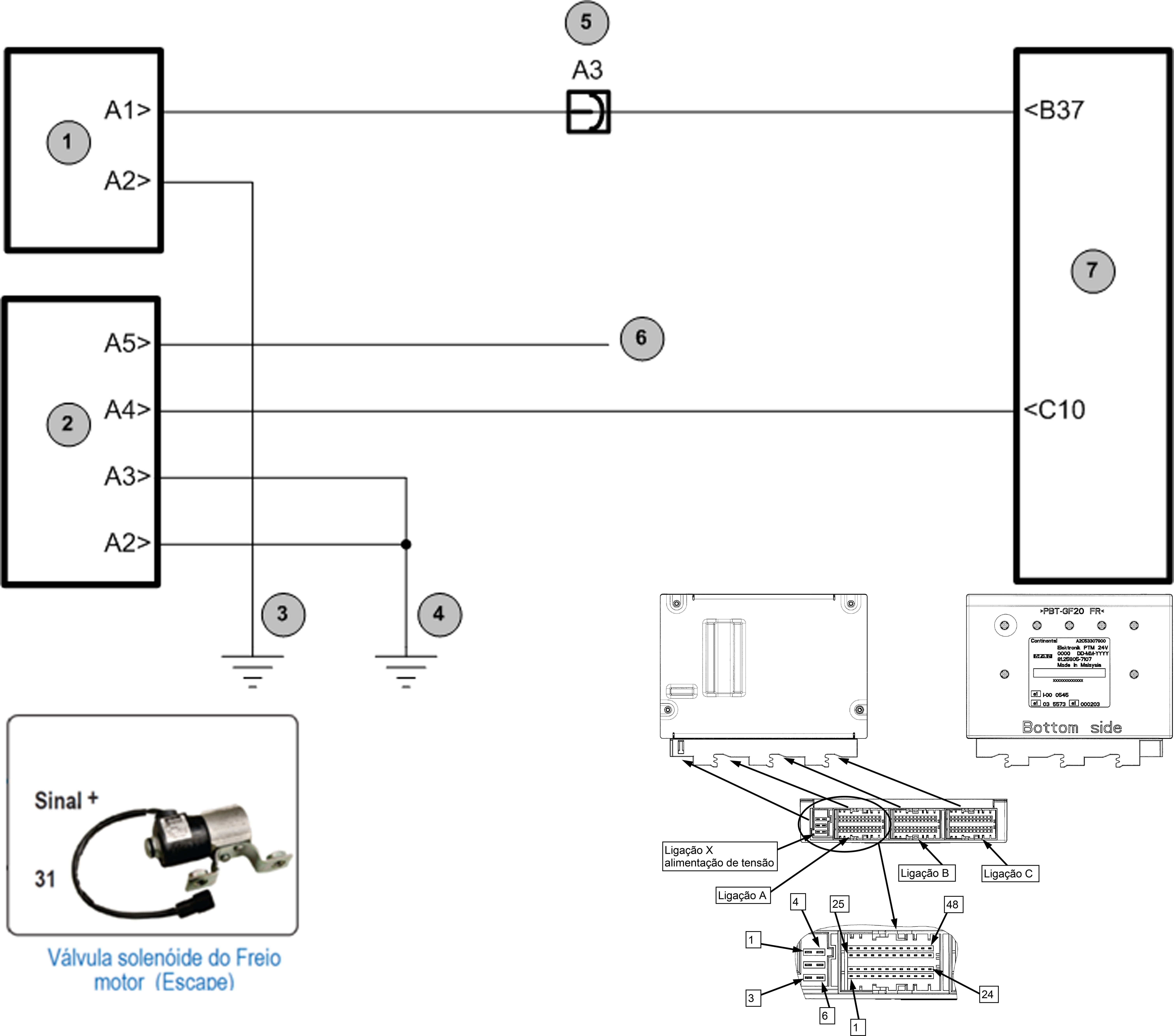 - Interface A pino 25 para o A1 conector interruptor de freio.