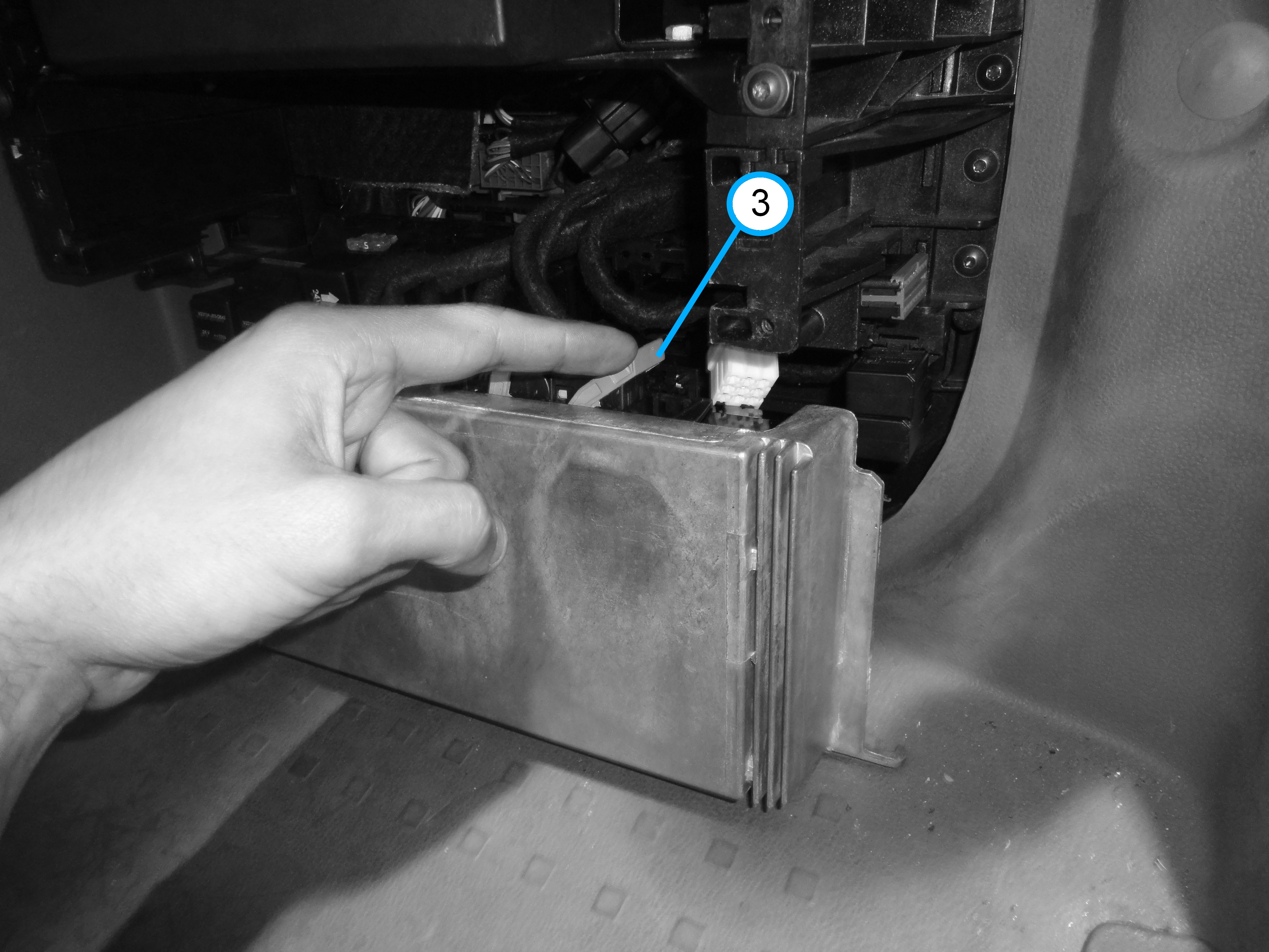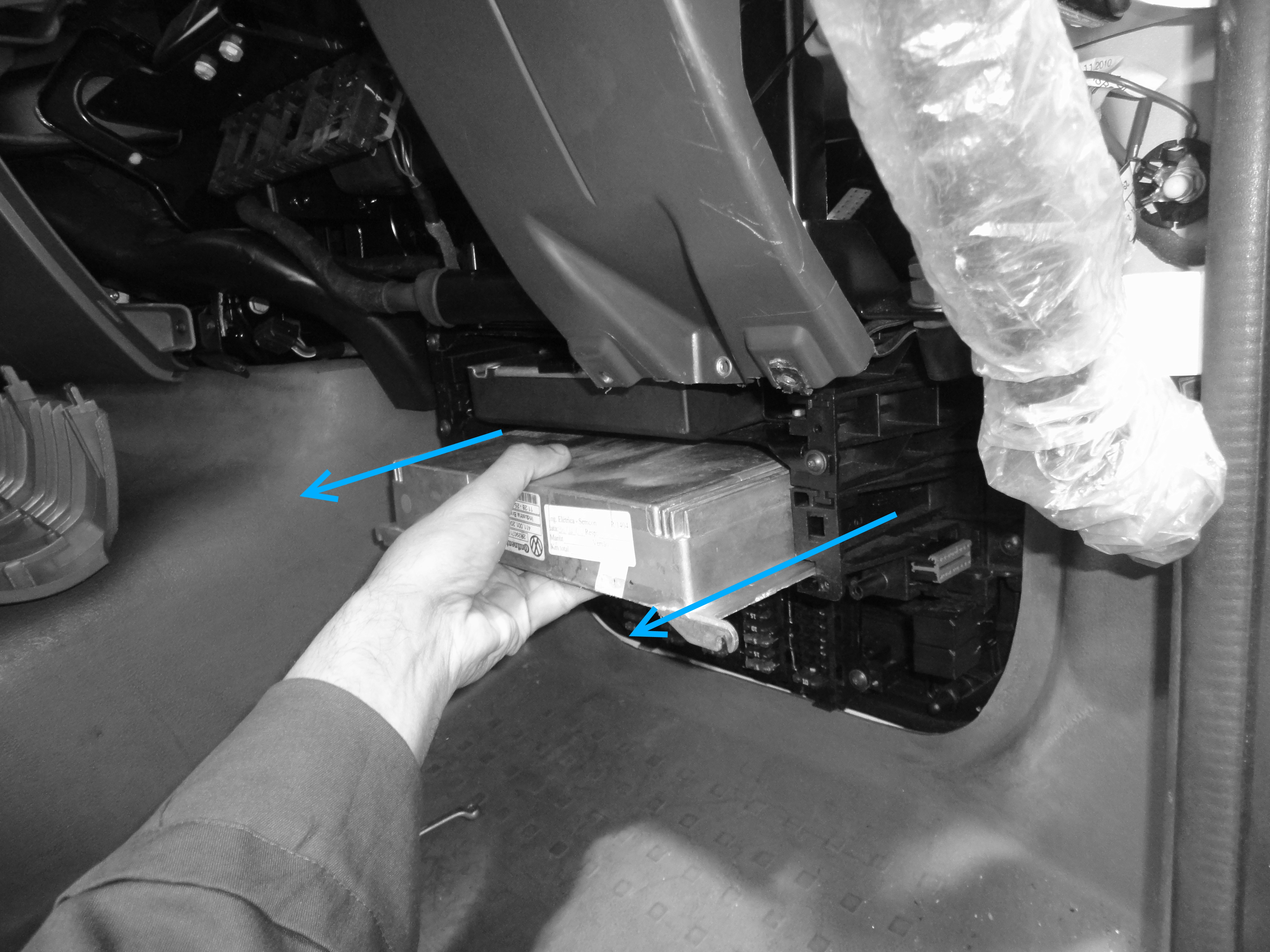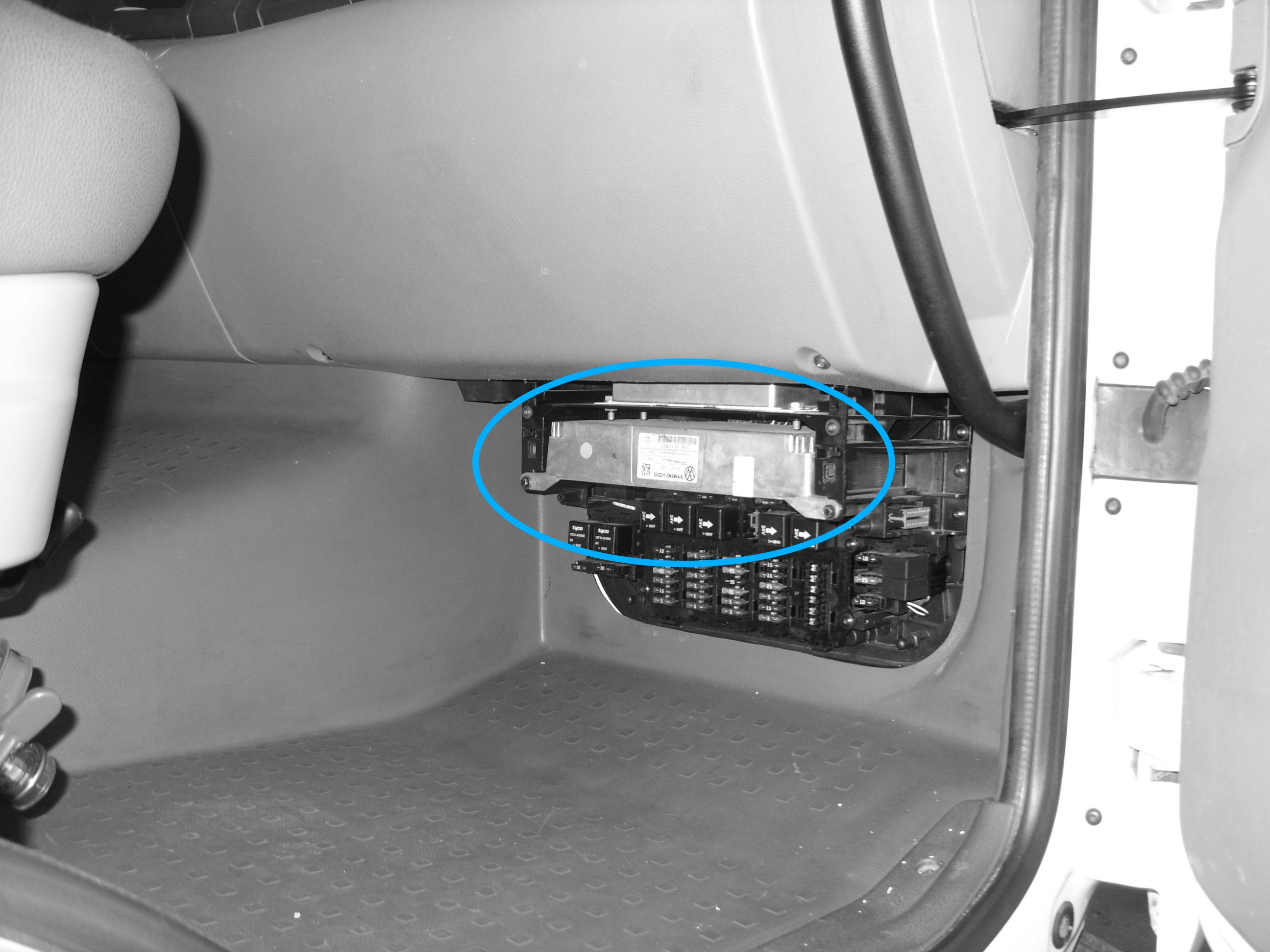 O módulo LU ( Unidade Lógica) está localizada na caixa de fusíveis no compartimento elétrico, que fica na posição inferior em frente ao banco do passageiro (conforme imagem acima).