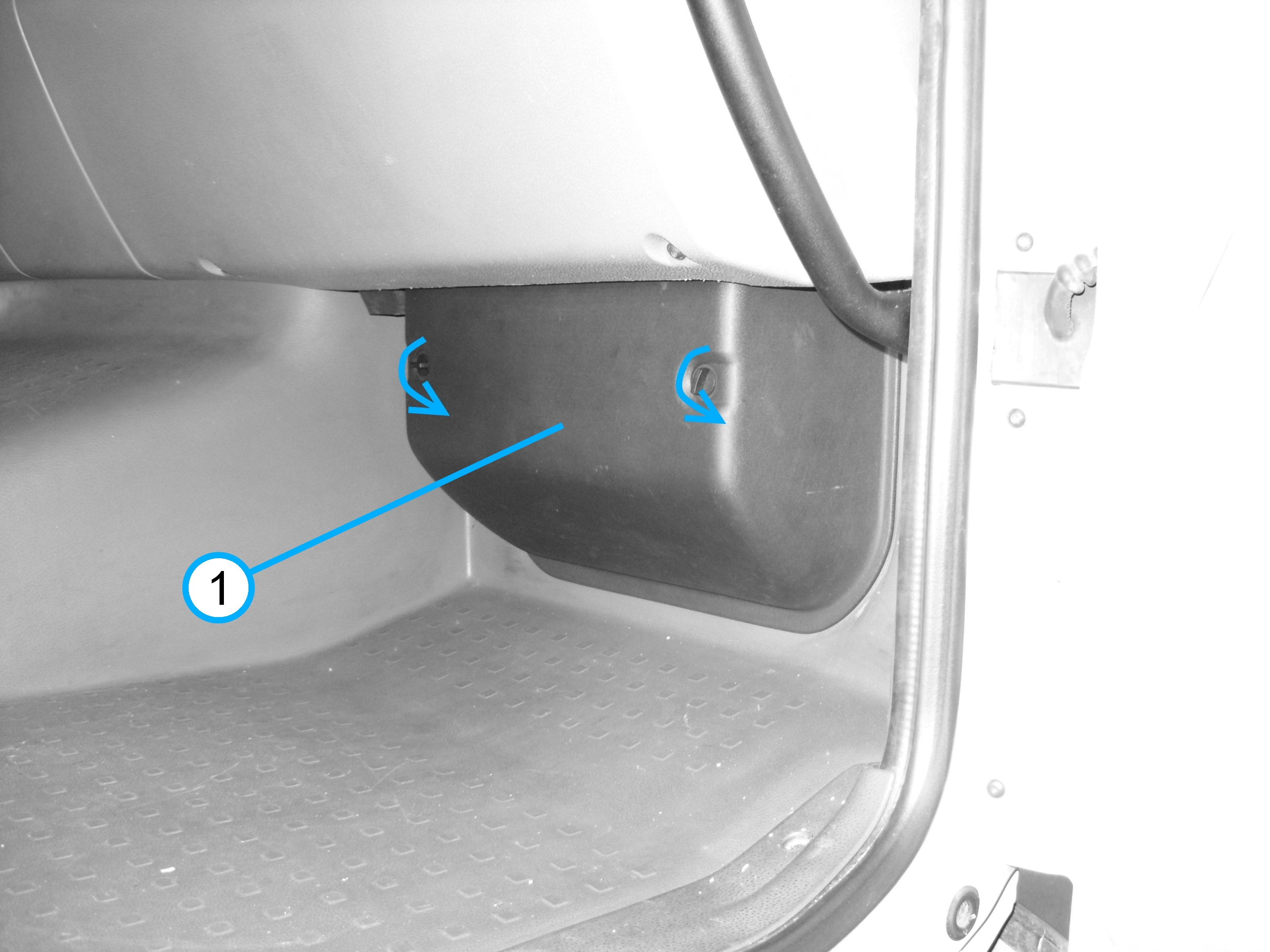 - Gire as trava da tampa da caixa de fusíveis (1), conforme a imagem acima.