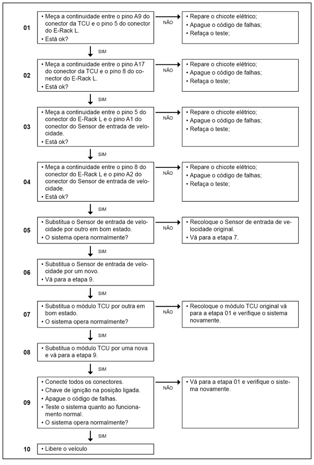 Leia sempre as Recomendações para Diagnósticos. A falha elétrica é detectada na condição desligado, após a identificação é