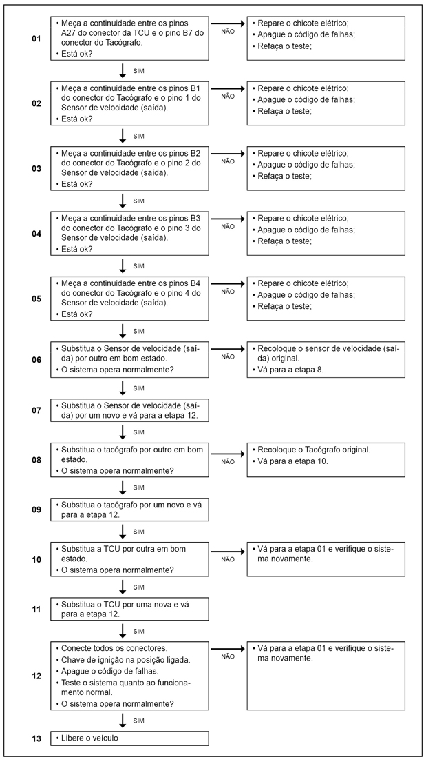 - Verificar o chicote elétrico até o tacógrafo.