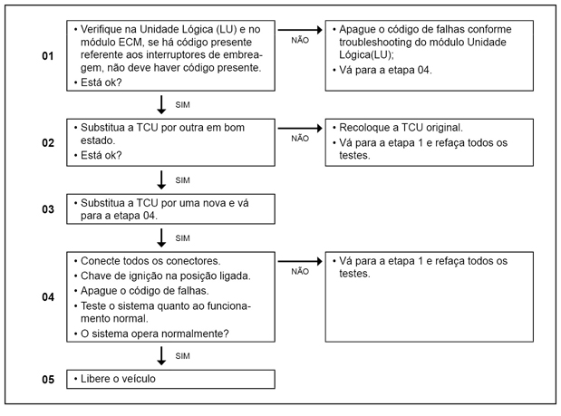 O módulo TCU (Transmission Control Unit) monitora o sinal dos interruptores de embreagem quanto à plausibilidade.