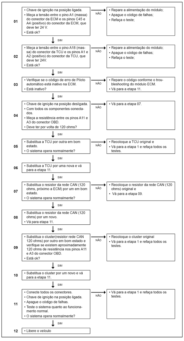O módulo TCU (Transmission Control Unit) monitora o recebimento da mensagem do piloto automático.