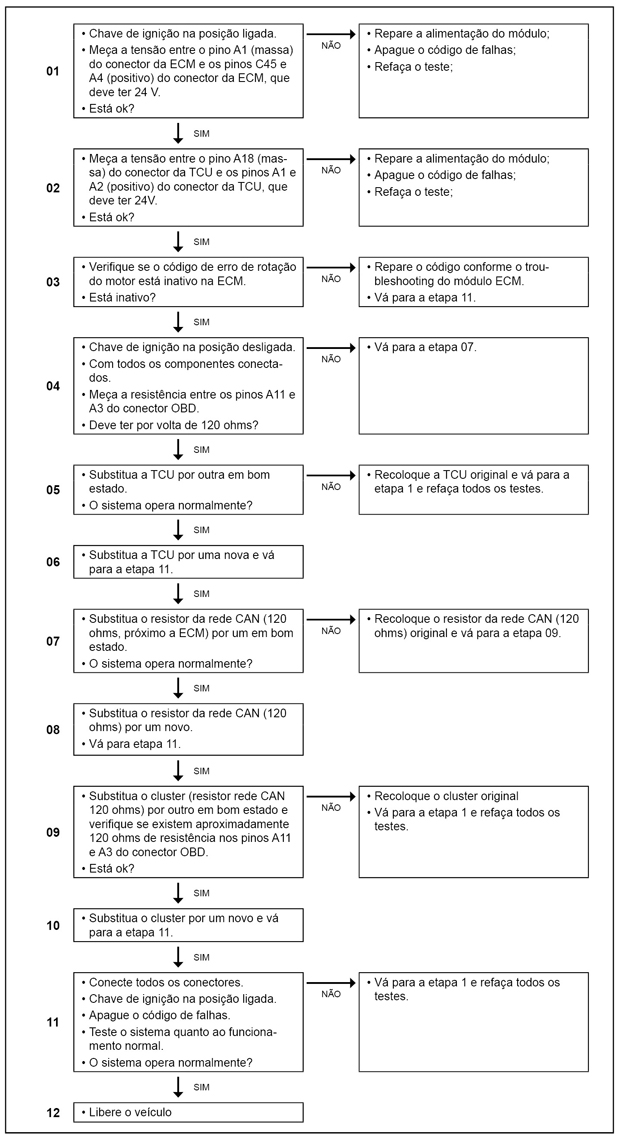 O módulo TCU (Transmission Control Unit) monitora o recebimento da mensagem de rotação do motor na CAN.