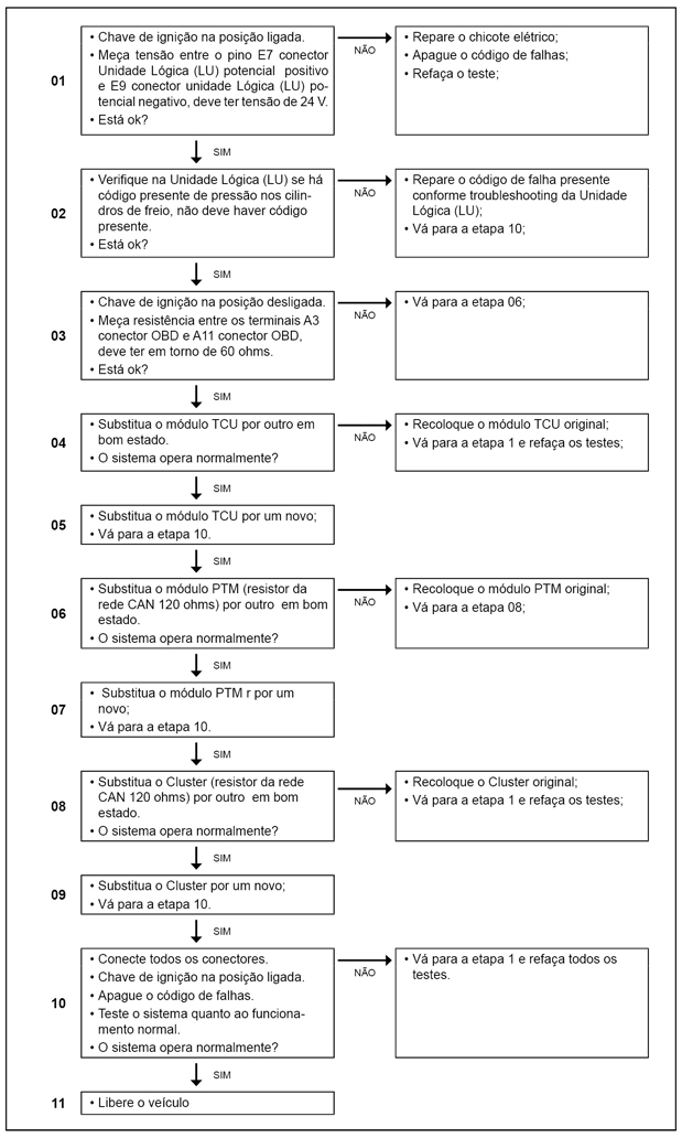O módulo TCU (Transmission Control Unit) monitora o valor dos níveis de pressão nos cilindros de freio.