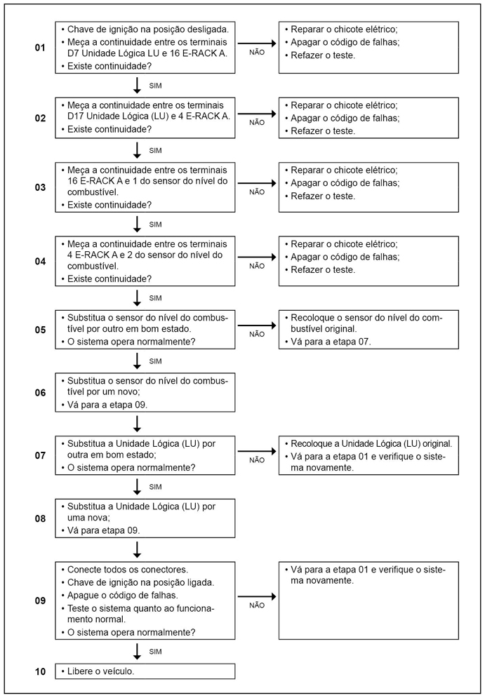 Circuito do sensor de combustível, corrente abaixo do normal ou circuito aberto.