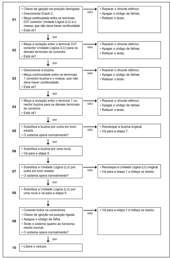 A Unidade Lógica (LU) monitora o circuito da buzina quanto à curto para o massa ou interrupção no circuito.