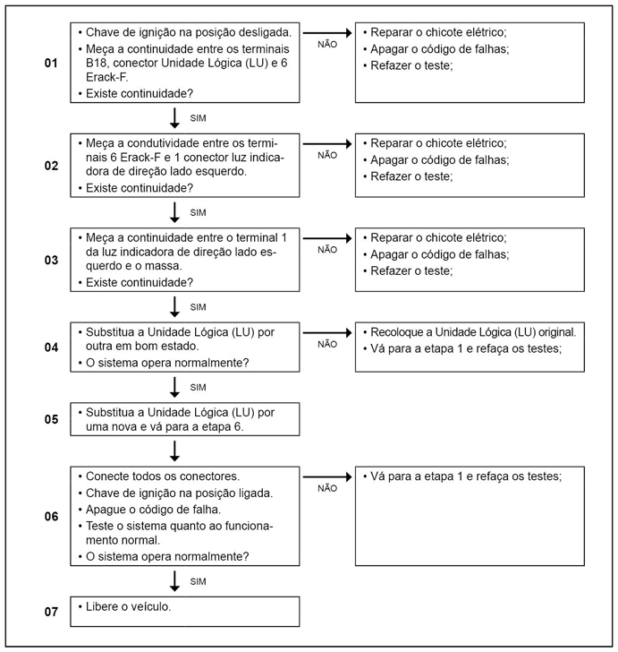 A Unidade Lógica (LU) monitora o circuito da luz indicadora de direção esquerda quanto à curto para o massa e interrupção.