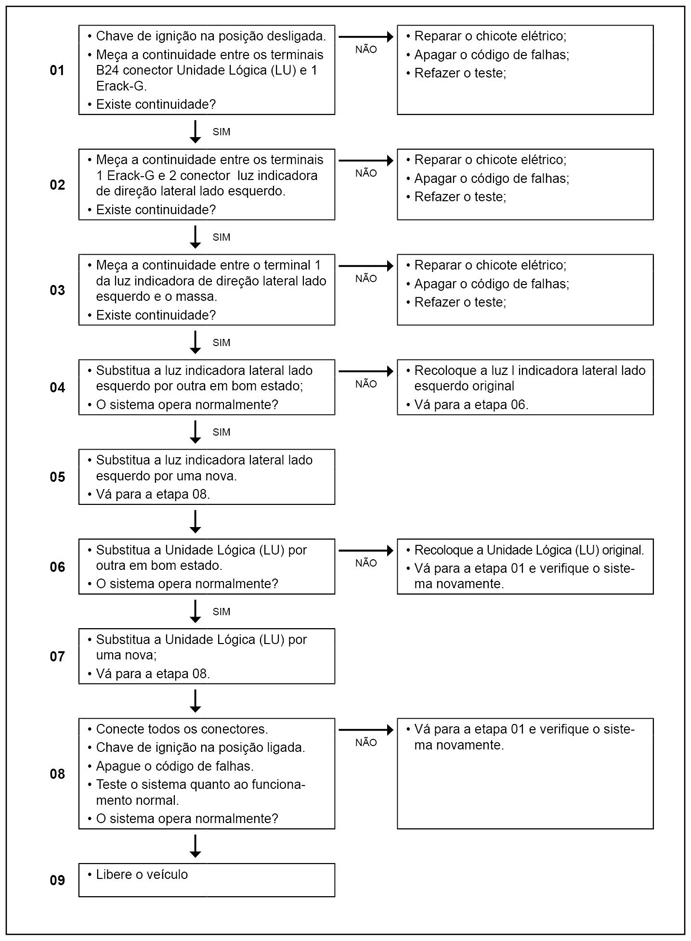 Analisar o filamento da lâmpada e medir a continuidade entre os dois pólos da luz indicadora de direção lateral esquerda.