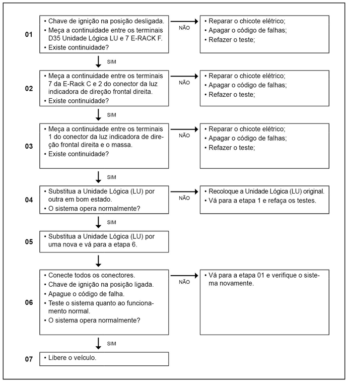 A Unidade lógica (LU) monitora o circuito da luz indicadora frontal direita quanto à curto para o massa e interrupção.