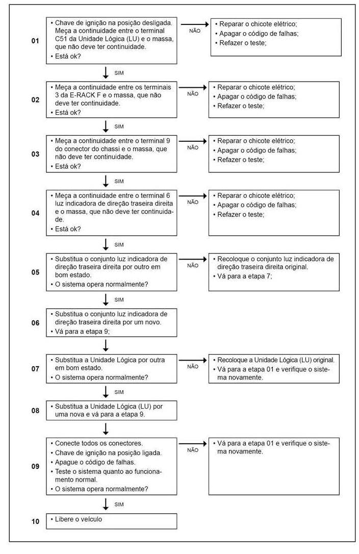 Analisar o filamento da lâmpada e medir a continuidade entre os dois pólos da luz indicadora de direção lateral direita.