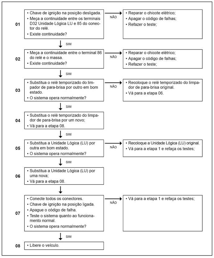 A Unidade Lógica (LU) monitora o circuito do relé do motor do limpador de para-brisa quanto à curto para o massa ou interrupção.