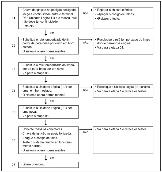 A Unidade Lógica (LU) monitora o circuito do relé do motor do limpador de para-brisa quanto à curto para o massa ou interrupção.
