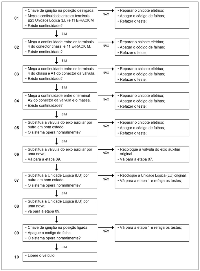A luz de advertência do eixo auxiliar permanece ligada enquanto a falha estiver