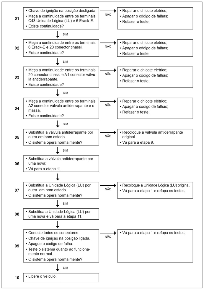 A Unidade lógica (LU) monitora o circuito da saída da válvula de antiderrapante quanto à curto para o massa e/ou interrupção.