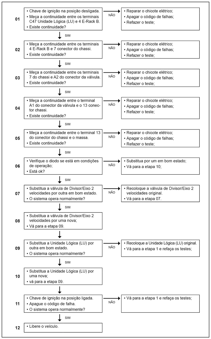 Circuito de saída da válvula divisor/eixo 2º velocidade/marcha super reduzida, interrompido.