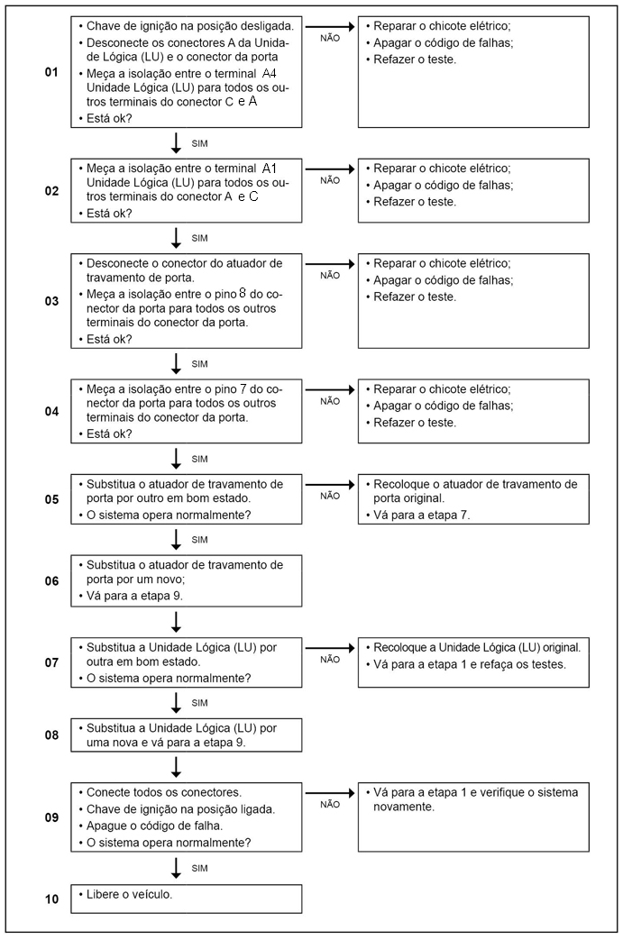 Todas as saídas de travamento de porta serão desativadas, até o erro desaparecer.