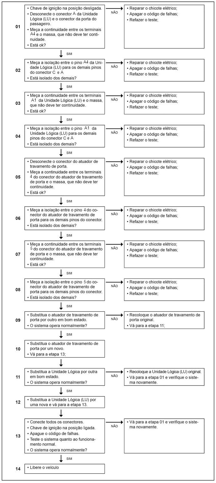 Circuito do atuador da porta do passageiro, curto circuito para o massa.