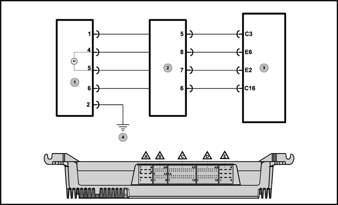 Circuito de saída do atuador da porta do motorista, interrompido.