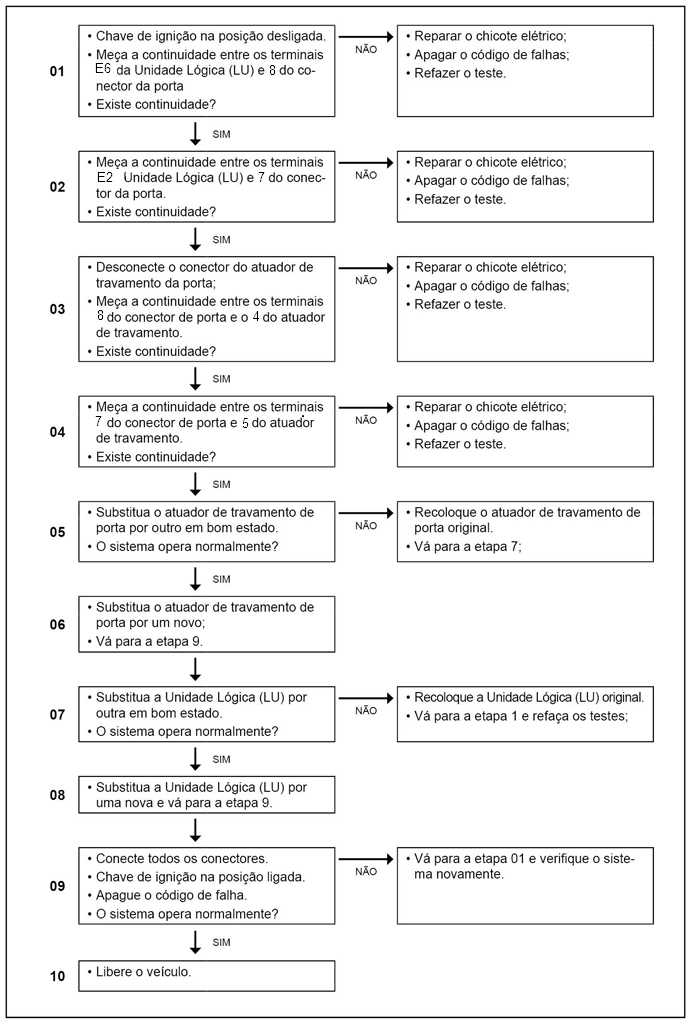 Todas as saídas de travamento de porta serão desativadas, até o erro desaparecer.
