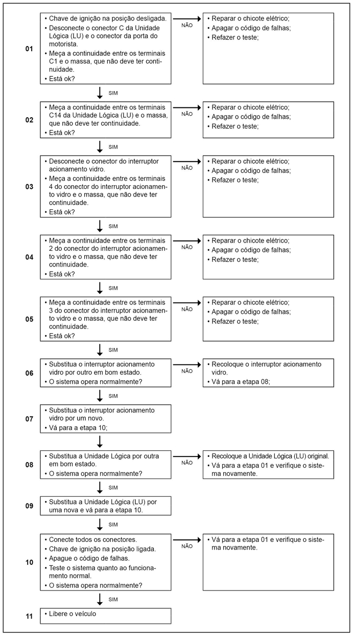 Circuito do interruptor do vidro elétrico lado motorista da janela esquerda, em curto circuito para o massa.