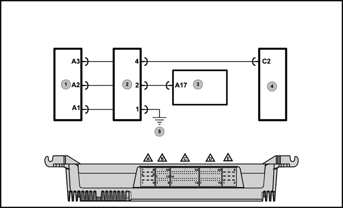Sinal do interruptor do vidro do passageiro da janela direita, em curto-circuito com o potencial negativo.
