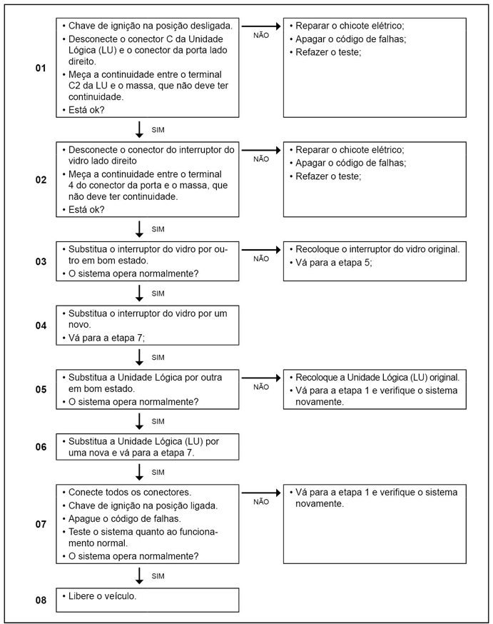 Interruptor de controle levantamento vidro porta do motorista com defeito verificar conforme tabela abaixo.