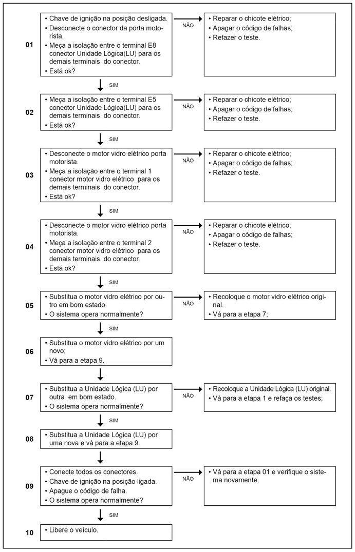 Falha na ponte ligação do vidro porta do motorista em curto para um potencial positivo. |