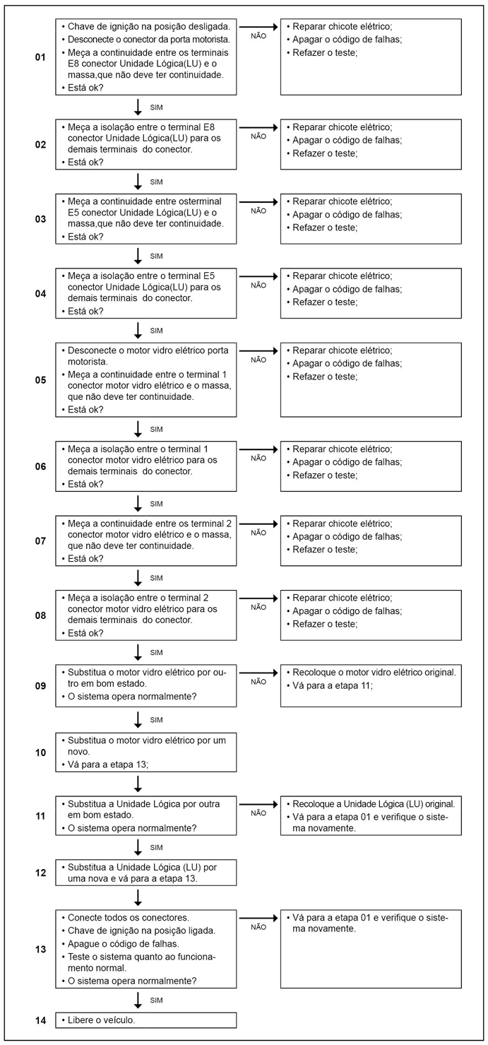 Sinal de erro na ponte elétrica para acionamento do vidro esquerdo, em curto-circuito com o massa.