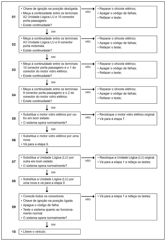 Erro na ponte elétrica de acionamento do vidro elétrico passageiro circuito em aberto. |