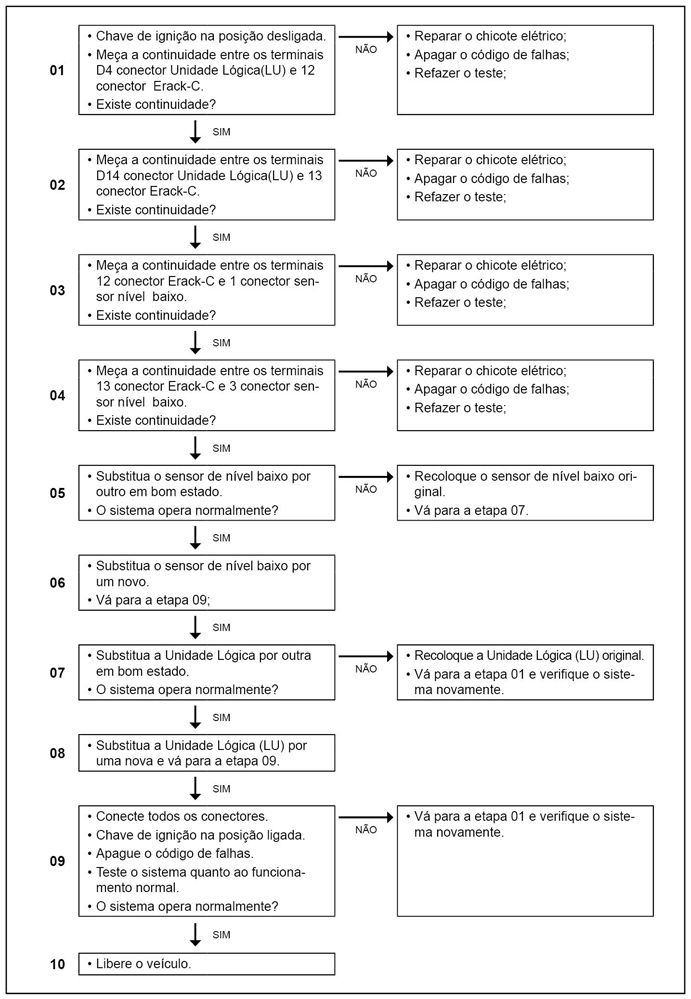 Este código indica que o sensor de nível baixo, encontra-se em curto com a massa.
