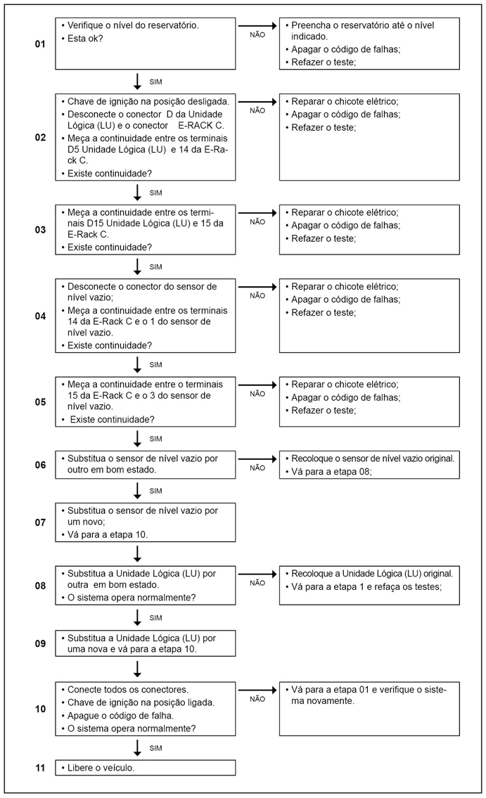 Este código indica que a leitura do sensor de baixo nível esta fora do especificado.