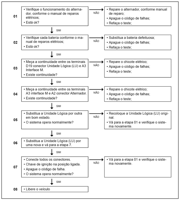A Unidade Lógica (LU) monitora se o alternador está desligado durante o funcionamento do motor.